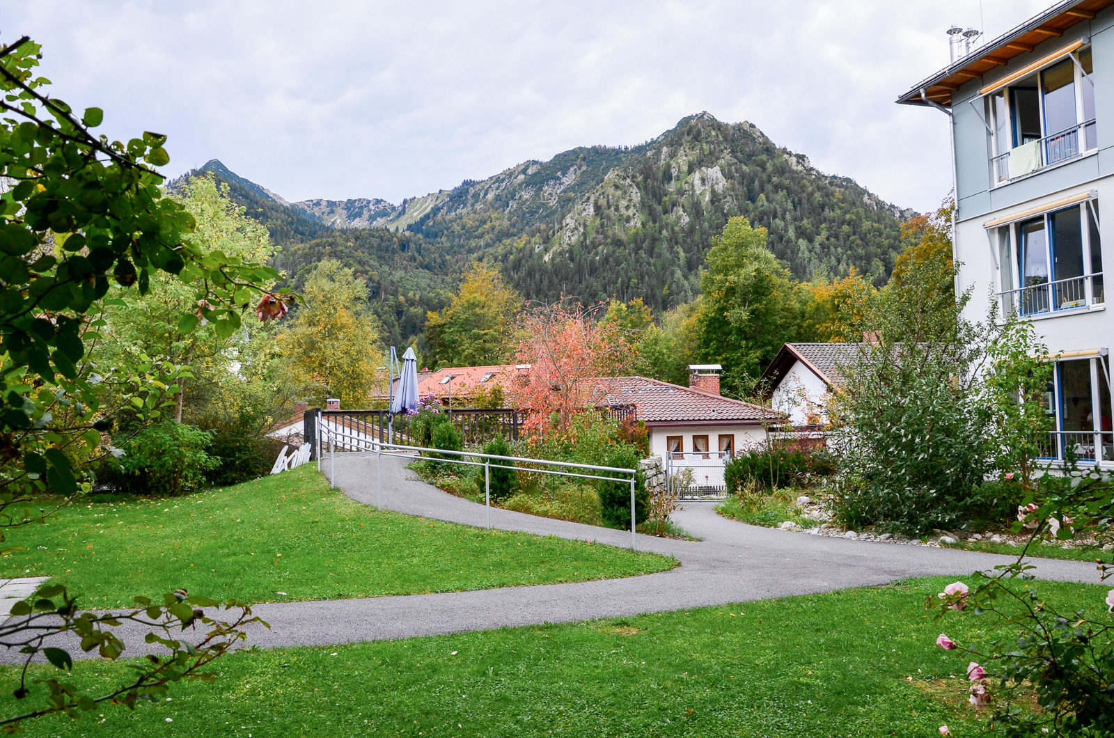 Die Mitte des Gartens ist der südlich ausgerichtete, windgeschützte Innenhof mit Freisitz, großer und kleiner Terrasse, alpiner Bepflanzung und wunderschönem Bergblick. Der östliche Gartenteil mit altem Baumbestand schenkt Schatten und Ruhe. Nordseitig lädt eine bestuhlte Terrasse zum Sitzen und Schauen ein.